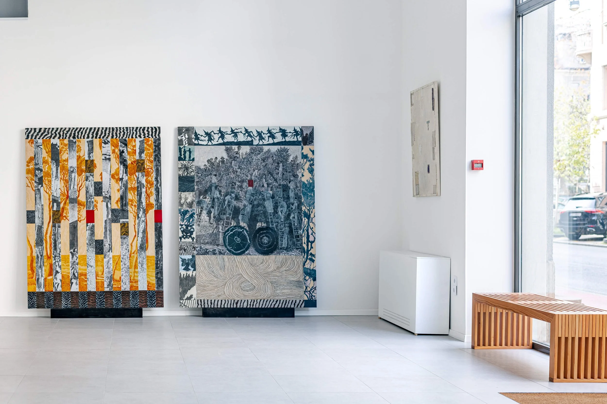 Ovi kolaži hommage su seriji kolaža Marija Miličića manjeg formata nastalih 2022. godine. Kako se povećava površina rada, tako raste i Mariova samopouzdanost te ovladavanje materijom koju koristi, a predstavljaju ju nasumični i sasvim slučajno izabrani, odbačeni materijali transformirani u gradbeni element svake od četiri kompozicije. Iste su, u najboljoj Mariovoj maniri poigravanja na temu kolaža, zavodljivo prozračne no opet angažirajuće za oko promatrača. Otkad je za sebe prepoznatljivu estetiku ulične umjetnosti (barem privremeno) preselio u studijski prostor, geometrijsko-apstraktne forme gotovo da su postale Mariov zaštitni znak. Ova serija, što s ponosom ističemo, nastala je u kolaboraciji Kolekcionarta s umjetnikom.